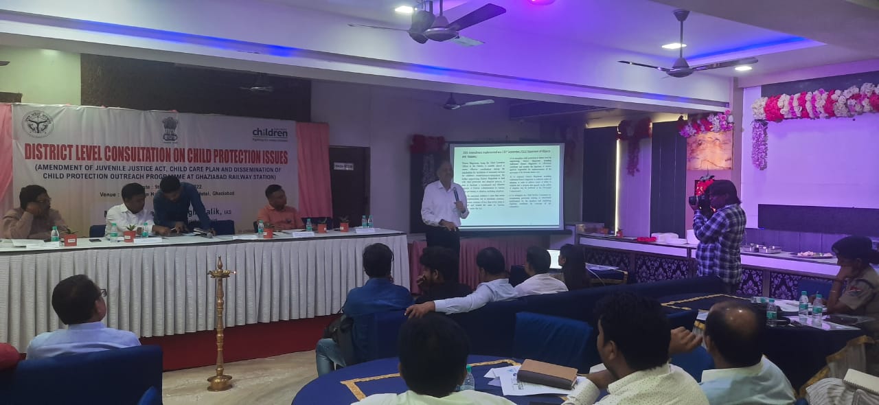 Mr. Shashank Shekhar, addressing various stakeholders at District Level consultation on Child Protection Issues at Ghaziabad on 9th September, 2022. The consultation was organised by District Child Protection Unit, Ghaziabad, and Railway Children India. Mr. Shekhar addressed on the topic related to JJ Amendment, 2021 and on Child Care Plan.